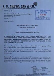 In a letter dated April 28, 2026, and addressed to the CJN at the Supreme Court in Abuja, counsel to the party, S. E. Aruwa, SAN & Co., described the matter as a constitutional emergency requiring immediate intervention.