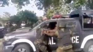 The incident, captured in a viral 53-second video, showed uniformed personnel engaged in a heated physical confrontation as the President was departing the venue of an official event. In the footage, the driver of a Hilux vehicle marked “Naval Police” was seen stepping out of his vehicle and exchanging words with another driver before returning to his seat. Moments later, a soldier carrying a rifle approached and threw a punch at the Naval Police driver, triggering a chaotic brawl that quickly escalated into a free-for-all, with personnel from both sides exchanging blows as stunned civilians looked on in disbelief.