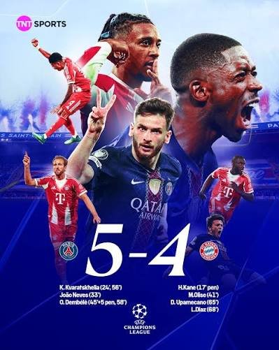 Paris Saint-Germain and Bayern Munich combined to rewrite the Champions League record books on Tuesday night, playing out a breathtaking 5-4 thriller in the first leg of their semifinal encounter that now stands as the highest-scoring semifinal in the competition’s history.