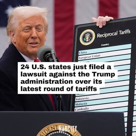 A coalition of two dozen U.S. states has filed a lawsuit against President Donald Trump over a newly imposed 10 percent tariff on imports from around the world, escalating the legal battle over the administration’s aggressive trade policies.