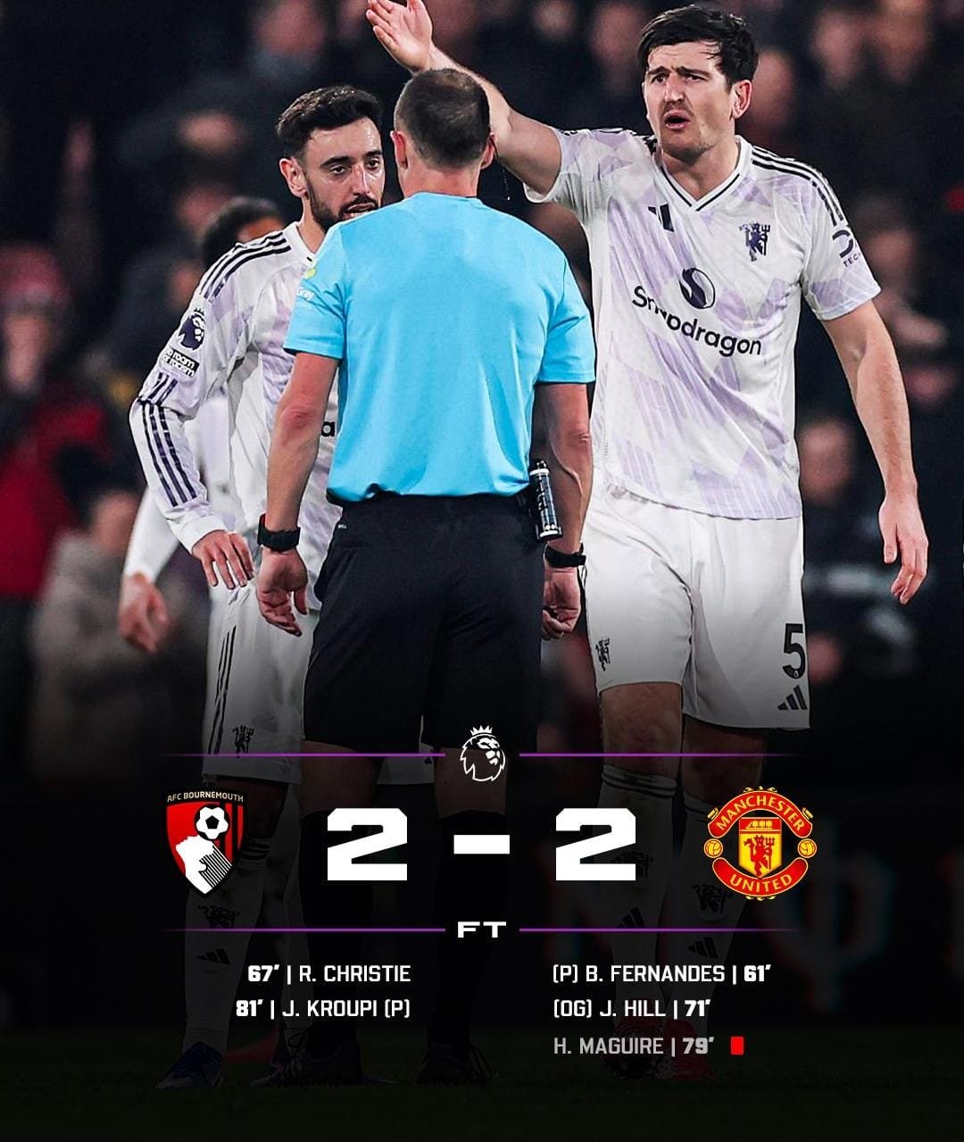 Bournemouth responded quickly, as Ryan Christie equalised just minutes later following a controversial moment in which United was denied a penalty at the other end.