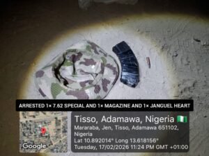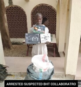 Acting on follow-up intelligence, soldiers also arrested 64-year-old Dauda Usman Gubula at Madagali Motor Park. He was accused of collaborating with terrorists and supplying drones allegedly modified locally for attacks against troops. Items reportedly recovered from him included two aerial drones, accessories, and 20 solar power banks.