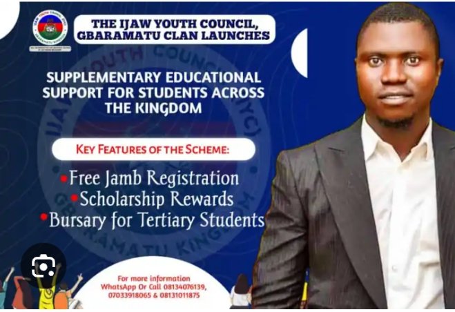 The Ijaw Youth Council, Gbaramatu Clan, has officially fulfilled its pledge to award scholarships to the top ten outstanding students who participated in the Joint Admissions and Matriculation Board examinations for the 2025/2026 academic session. The announcement marks the successful completion of the scholarship reward distribution under the second phase of the Supplementary Educational Support Scheme.