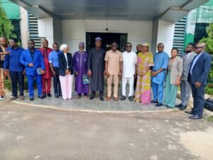 The Director-General and Chief Executive Officer of the National Institute for Sports, H.E. Comrade Philip Shaibu, alongside the management team, has paid a condolence and courtesy visit to the President of the Nigeria Football Federation, Ibrahim Gusau, at his office in Abuja.