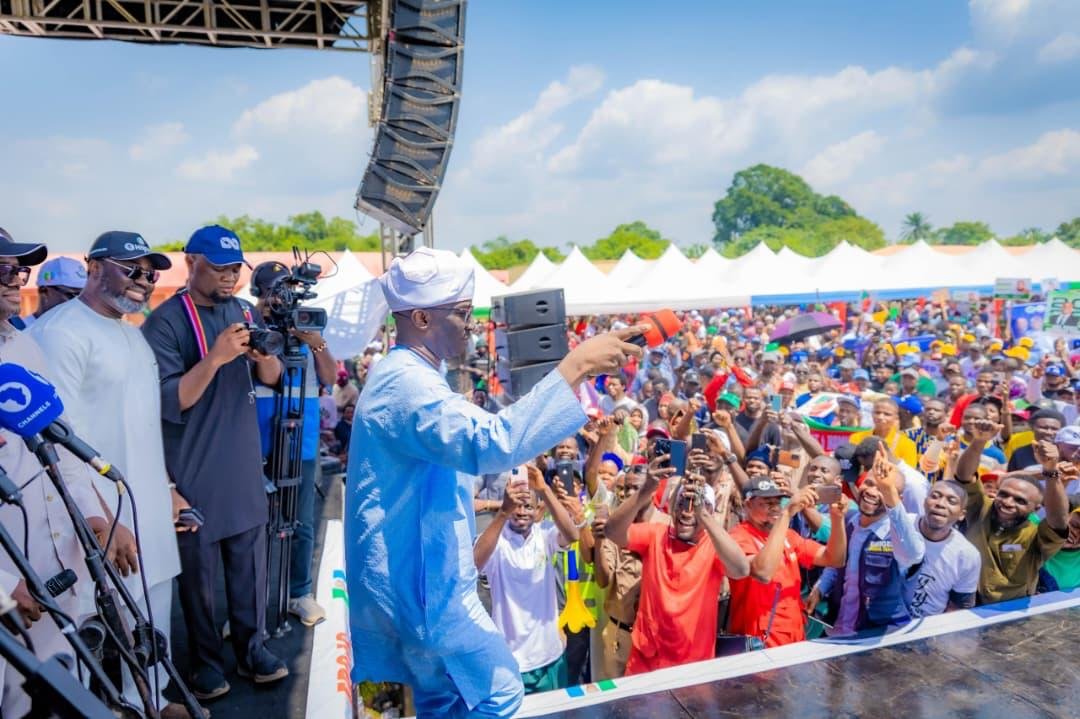 Edo State Governor, Senator Monday Okpebholo, has declared that President Bola Ahmed Tinubu is a leader who genuinely believes in Nigeria’s future, as he commissioned rebuilt shops for fire victims in Ekpoma and presented them with financial rewards. In a statement, the Chief Press Secretary to Governor Monday Okpebholo of Edo State, Dr. Patrick Akhere Ebojele, detailed the governor’s remarks during the inauguration of ward and local government coordinators of the Renewed Hope Ambassadors and a defection rally held at Eguare Public field in Irrua, Esan Central Local Government Area.