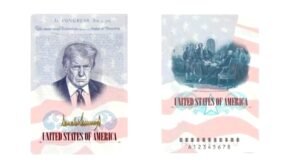The passports, part of the broader “America250” programme, will include customized artwork that blends Trump’s image with historic American symbolism. According to officials, the design places the president’s portrait on an interior page alongside elements of the Declaration of Independence and the U.S. flag, while another page features a depiction of the Founding Fathers signing the historic document in 1776.